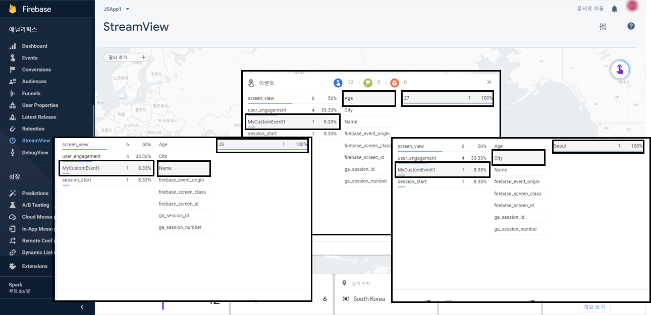 StreamView가 완전히 실시간으로는 나타나지 않을 수 있으니 Event를 Logging하시고 조금 기다려야 할 수도 있습니다.